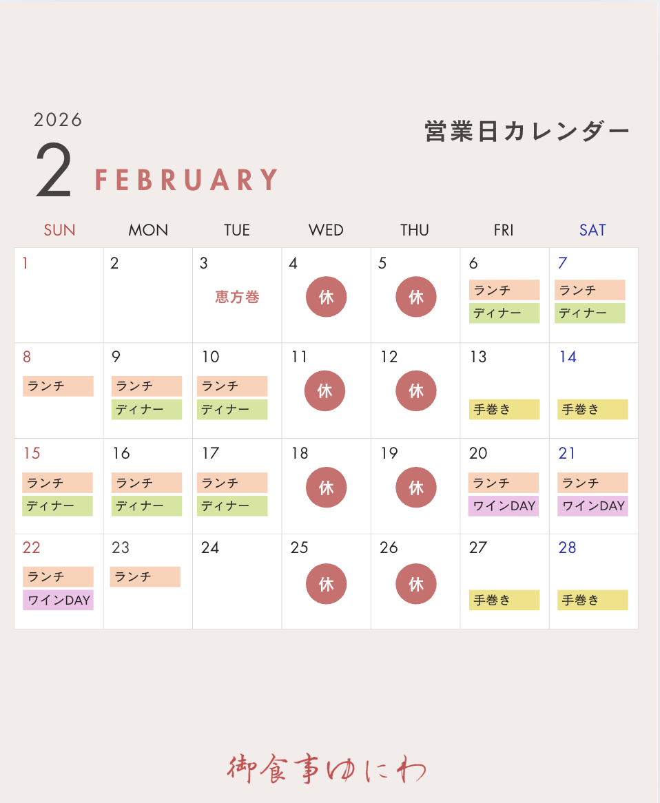 御食事ゆにわ 3月までご予約を承っております