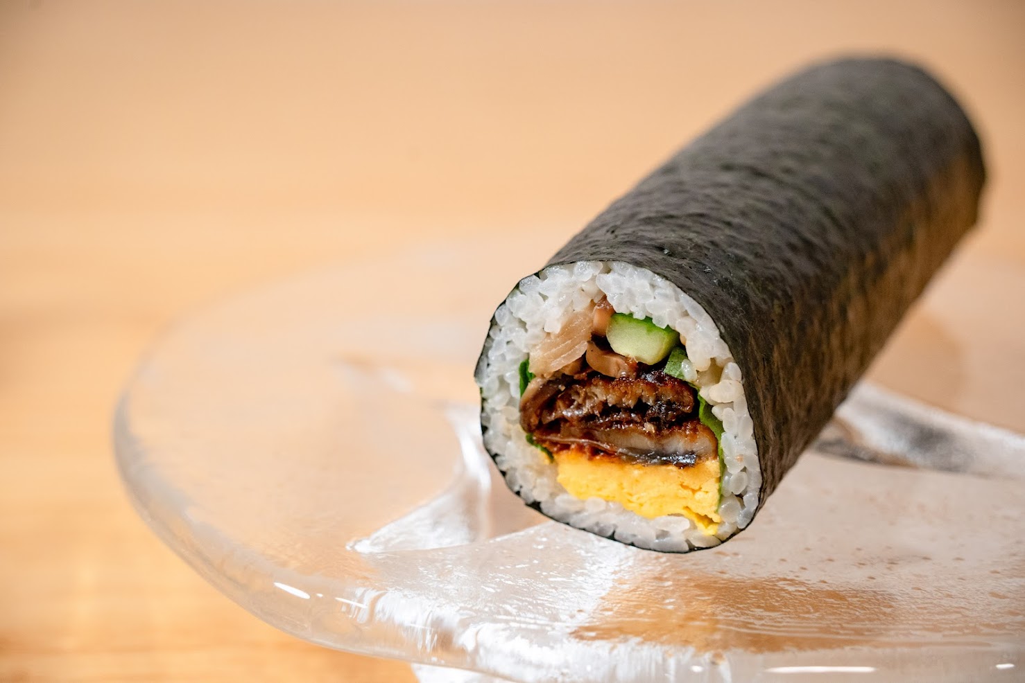 きゅうり、卵焼き、かんぴょう、椎茸煮、大葉が、鰻の濃厚な旨みを引き立てます。